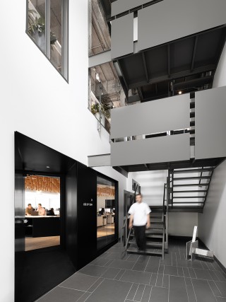 The firm was committed to respecting the built heritage by minimizing its interventions and favoring simple, understated layouts that highlight the exposed structure of the former building—a vestige of the area’s industrial past.