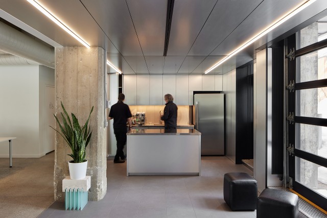 This was an opportunity to redesign the space according to the team’s new needs and to further open it up in order to bring in as much natural light as possible. Providing a pleasant work environment that fosters creativity and staff well-being was a top priority, along with the use of natural materials, subdued colors, and streamlined layouts that highlight the exposed structure of the existing building.