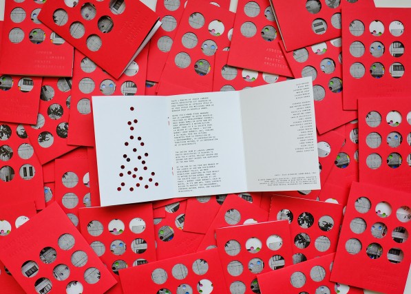 La carte combine le talent et la pratique indépendante d'artiste collagiste de notre architecte et le patrimoine de la firme en présentant une photographie de l'École secondaire Jeanne-Mance — un projet réalisé en 1967.